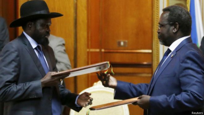 Mzozo wa kuwania madaraka uliokuwepo kwa miezi kumi kati ya Rais Salva Kiir na aliyekuwa Makamu wake Riek Machar umegharimu maisha ya maelfu ya Watu na takriban watu milioni mbili kuyakimbia makazi yao.