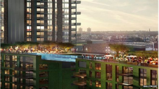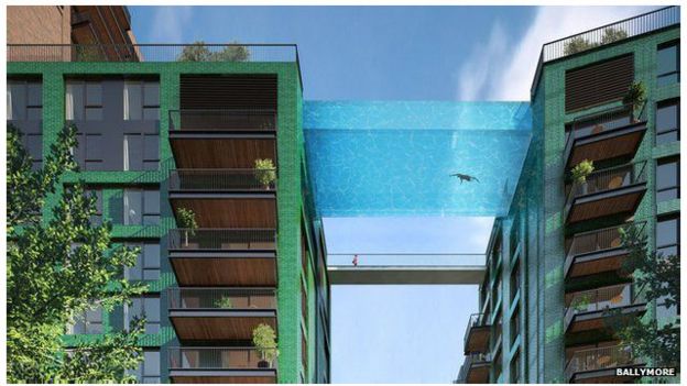 Kidimbwi cha kuogelea chenye urefu wa mita 25 kinachounganisha kilele cha majumba mawili marefu yenye ghorofa 10 kitajengwa mjini London.